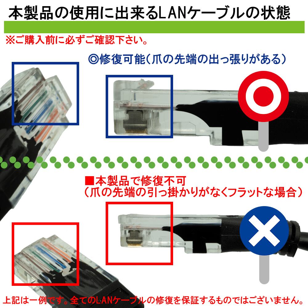 LANケーブルの端子のツメが折れて着脱できなくなったケーブルにご利用いただけます。