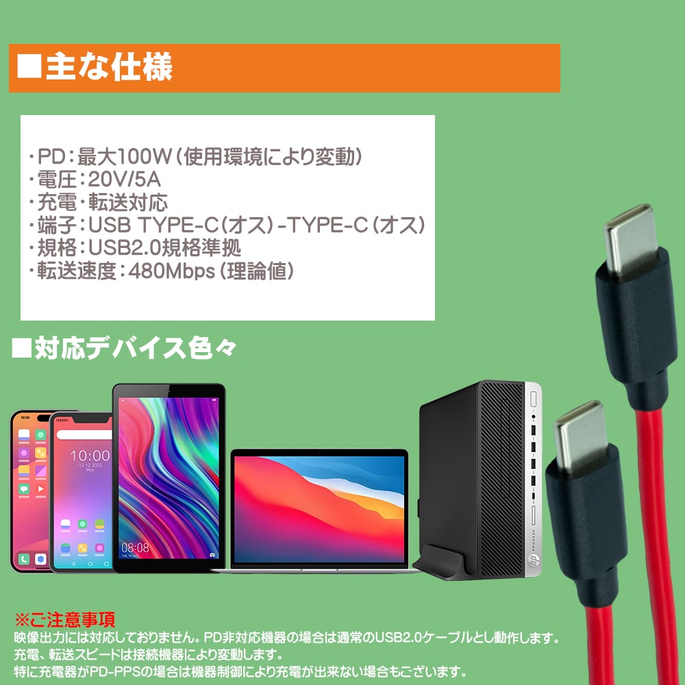 高出力・高耐久の最大PD(100W)充電対応のUSB Type-Cケーブル