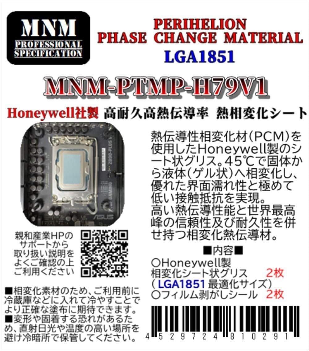 ■Honeywell製 長寿命/高信頼性/高性能 Intel LGA 1851用 PCMシート状グリス■