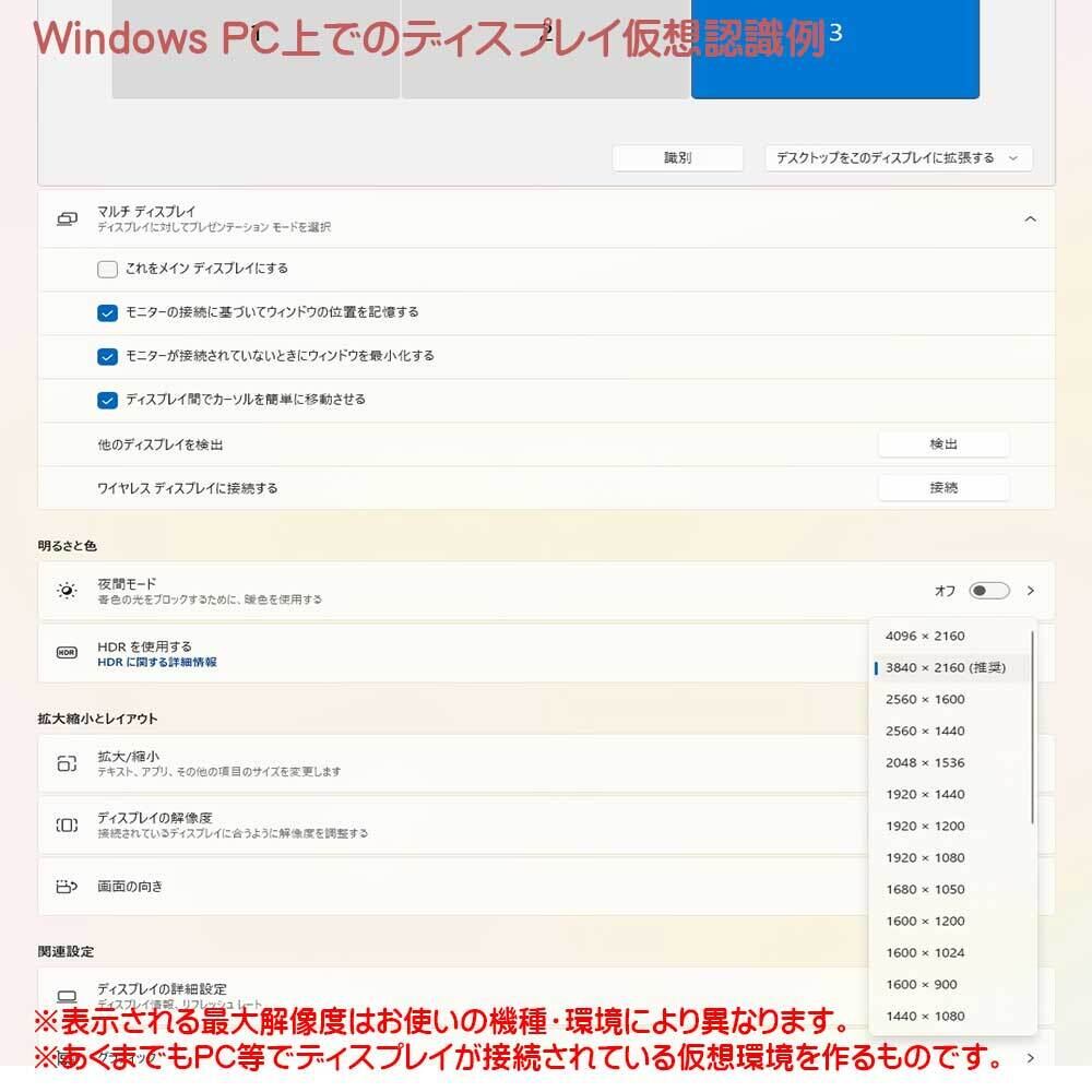 ※最大解像度はお使いのデバイスの解像度までとなります。リフレッシュレート4K環境では17Hzとなる場合がございます。