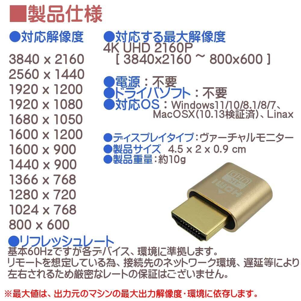 お得な3個セット エスエスエーサービスHDMI 4K UHD 仮想ディスプレイエミュレータ MS-004-3P