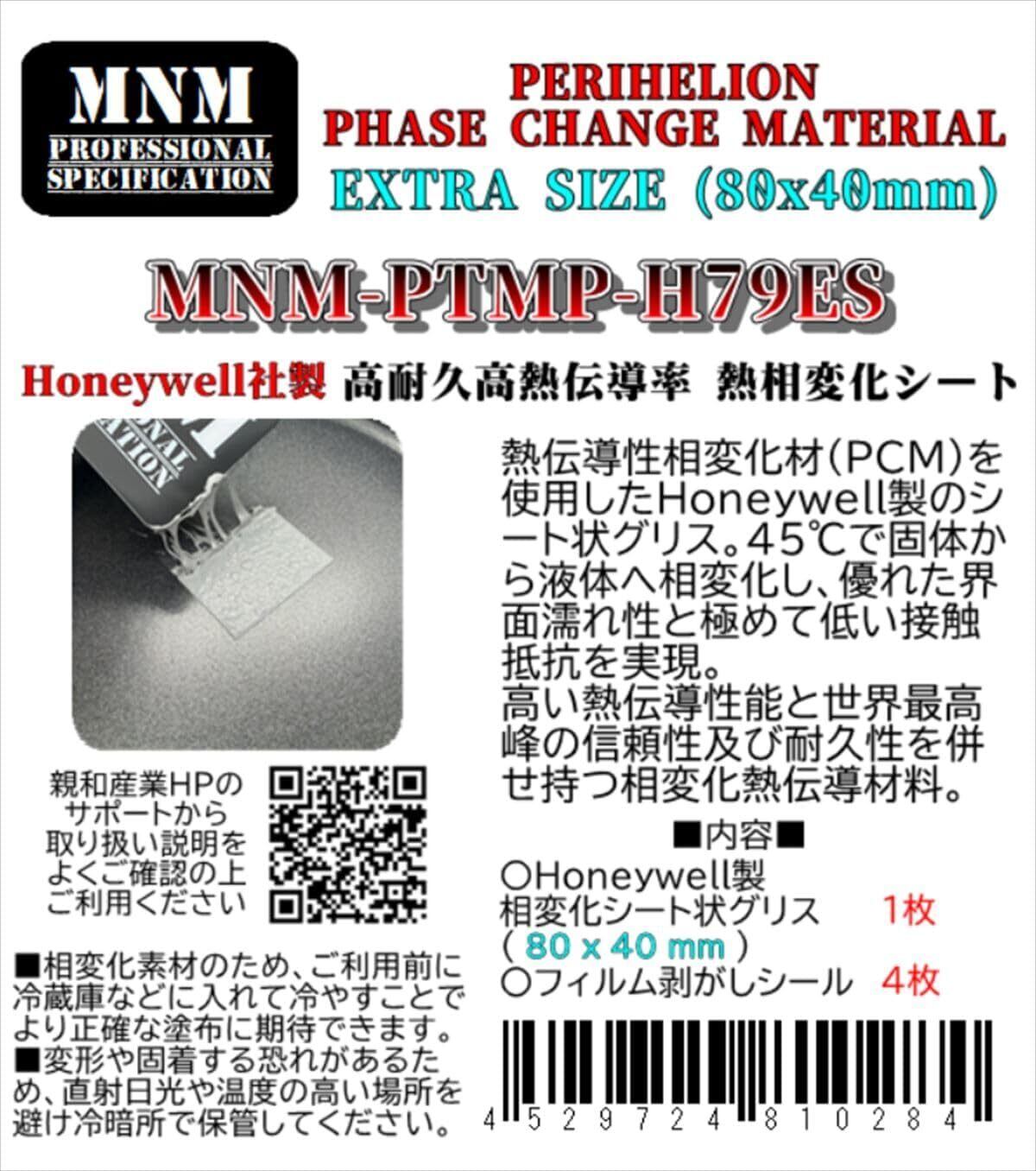 【親和産業 正規品】PERIHELION PHASE CHANGE MATERIAL EXTRA SIZE MNM-PTMP-H79ES【Honeywell製 PCM】(80x40mm GPU向けエクストラサイズ) グリスシート