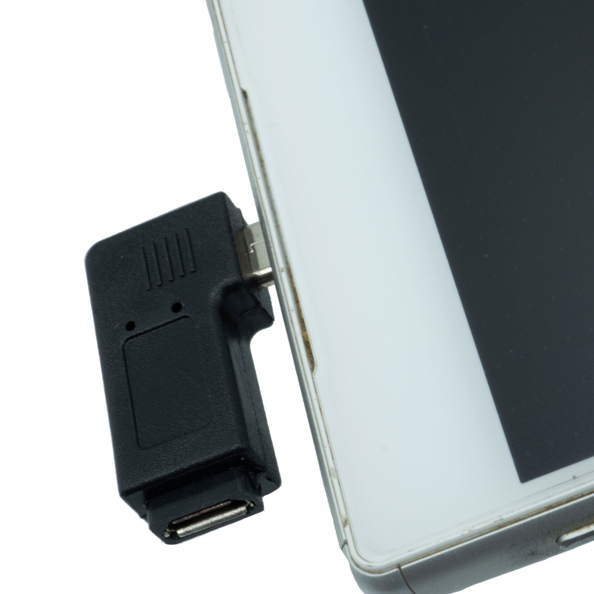 一般的なmicroUSB端子をL型に変換するコネクタです。
