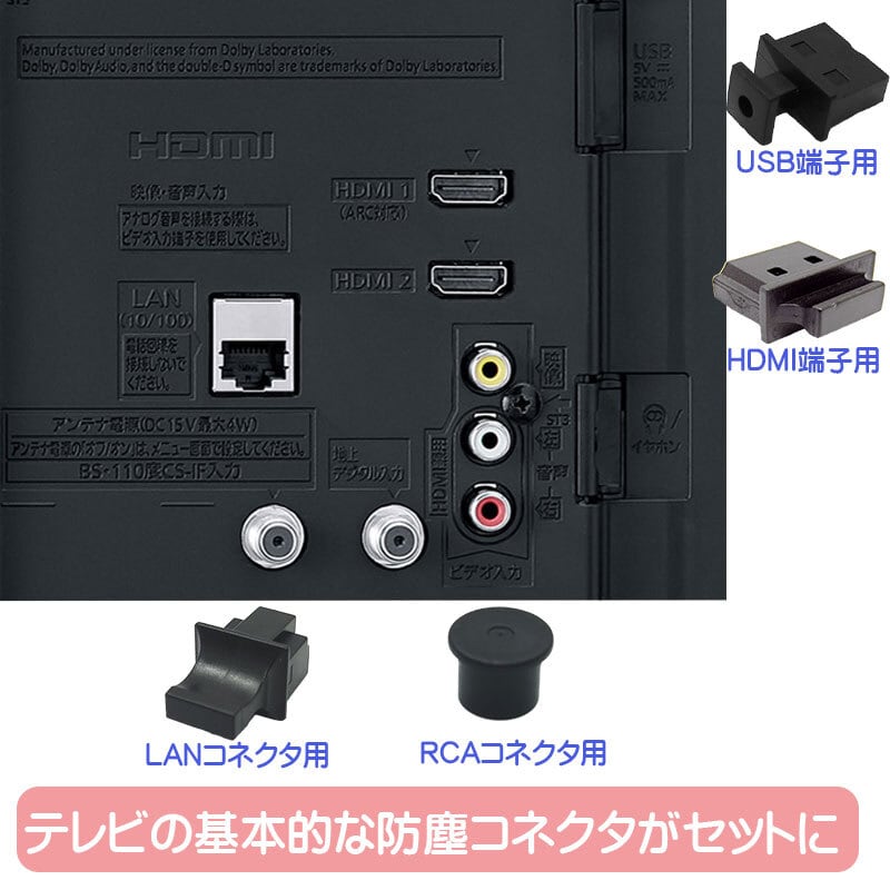 テレビ用 防塵キャップ ほこり 端子保護 HDMI RCA LAN RJ-45 VGA USB コネクタ キャップ 保護 エスエスエーサービス SSC-08TVは、テレビの接続端子を効果的に保護してくれるアイテムです。テレビは、スペースが限られている中で設置され、ほこりや汚れもついてしまいがちですが、このキャップを使用することで端子部分を守り、信号伝送の品質を保ってくれます。