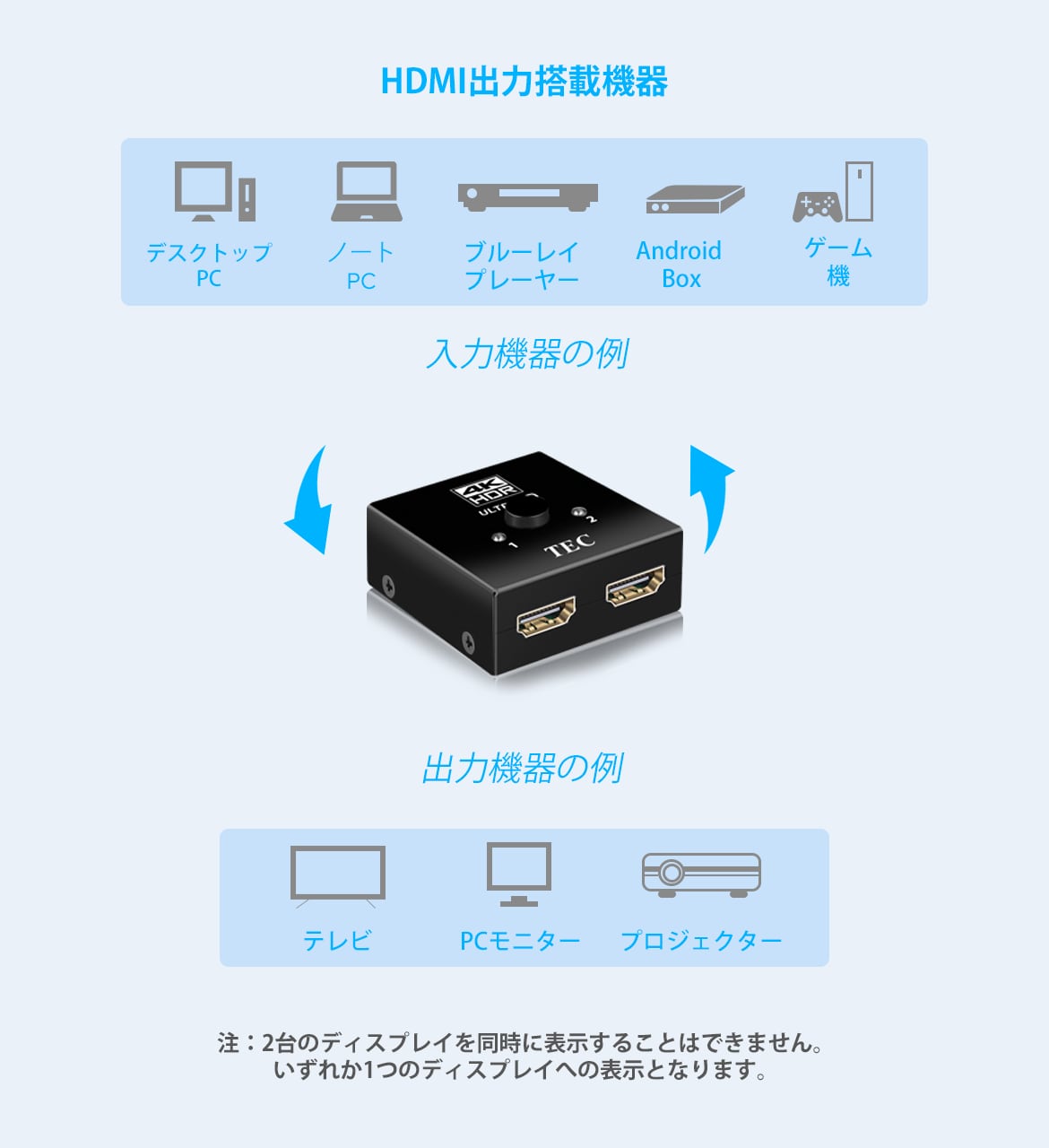 メーカー保証あり 4K HDR対応 双方向 HDMI切替器 分配器 スプリッター THDSW2W-4K60 TEC テック