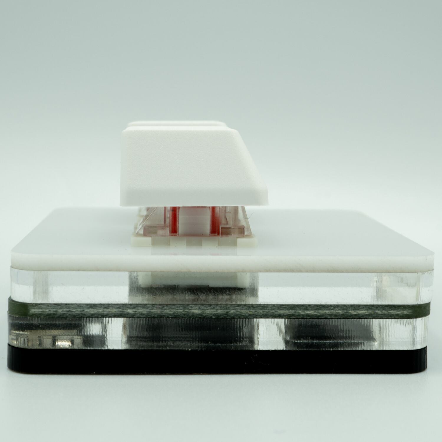 キーピッチは広めの19mmで赤軸採用のストローク4mmで柔らかなキータッチと、優しい押し心地。