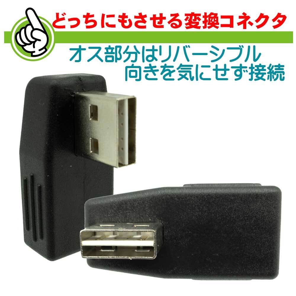 端子形状:USB2.0 A(L型両面 オス) / USB2.0 A(メス)