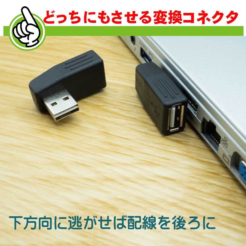 USB A メス – USB L型オスのL型変換コネクタ2個セットです。