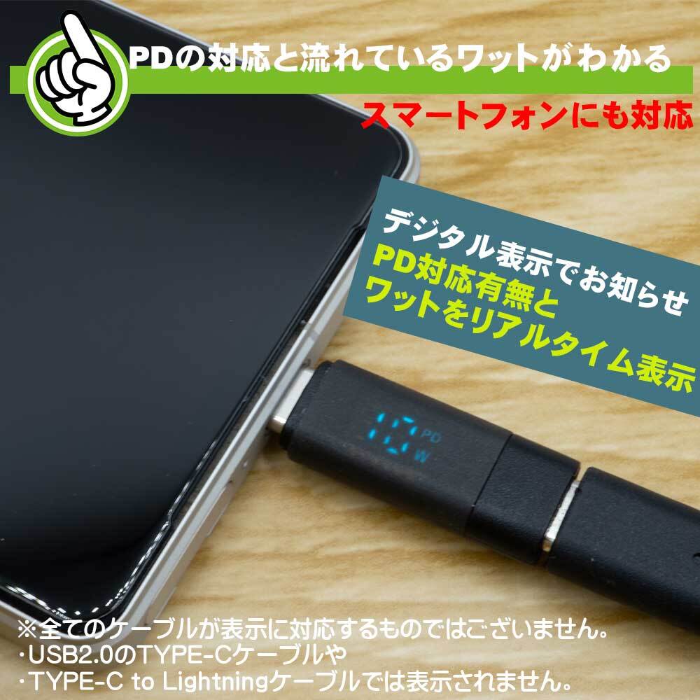 PD対応の有無と流れているワットがわかるType-Cチェッカーです。