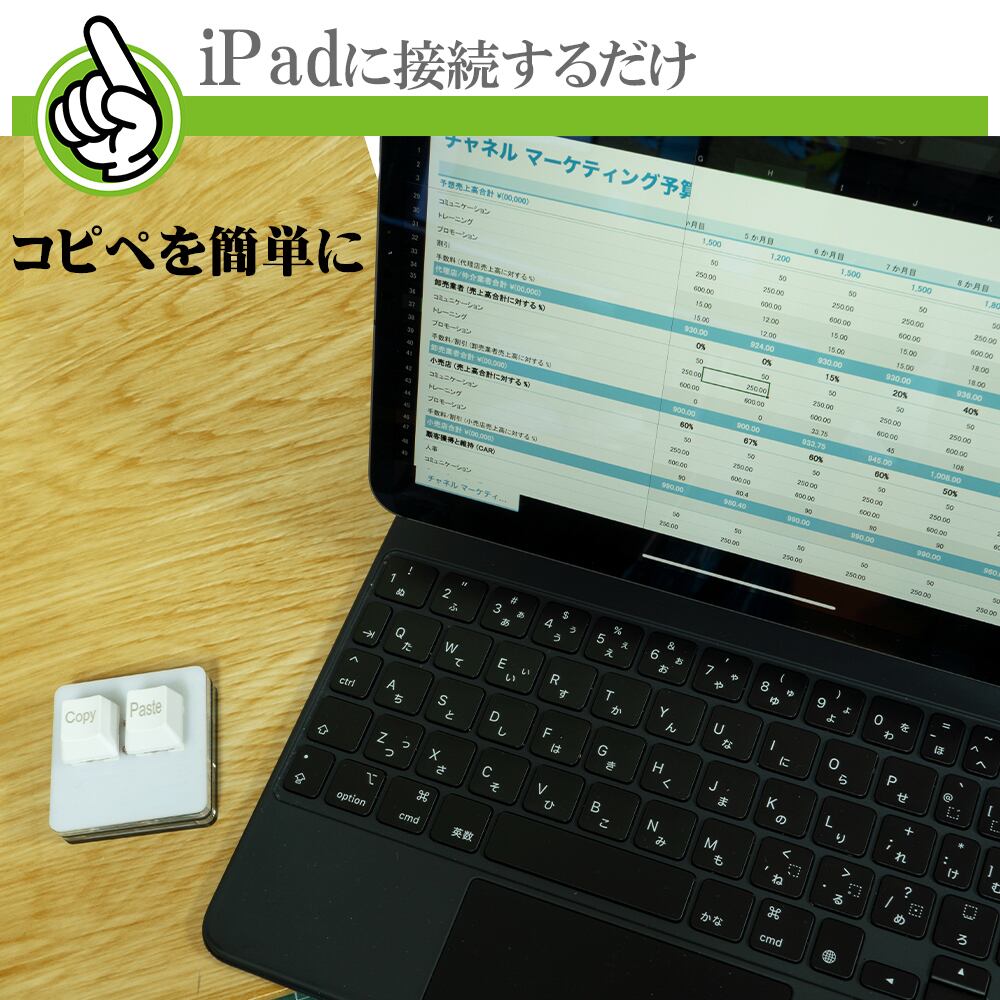手元に置いて利用出来るので今までショートカットキーやマウスで操作していた コピー、ペーストがより簡単に出来ます。