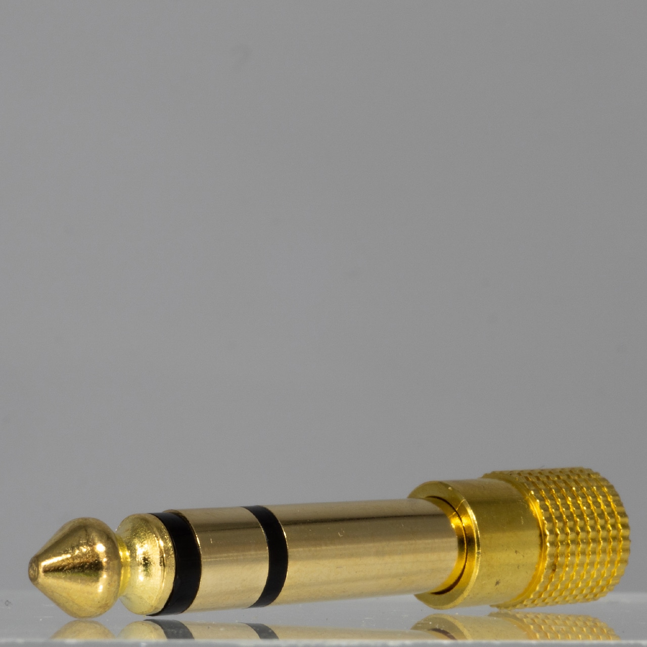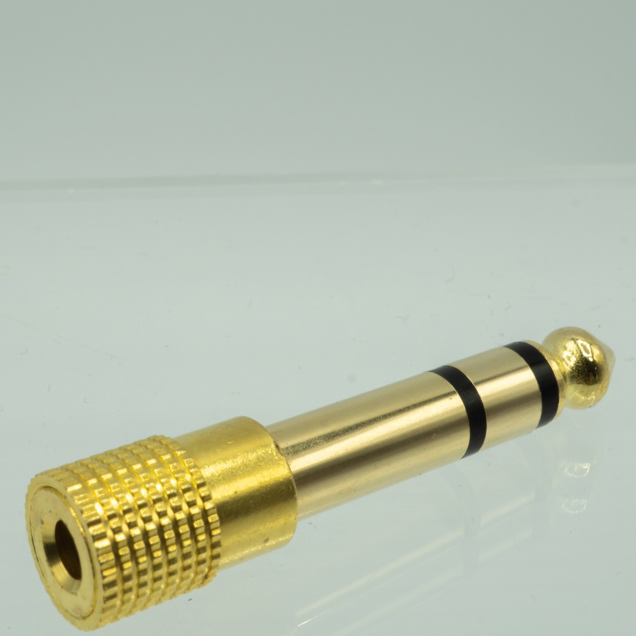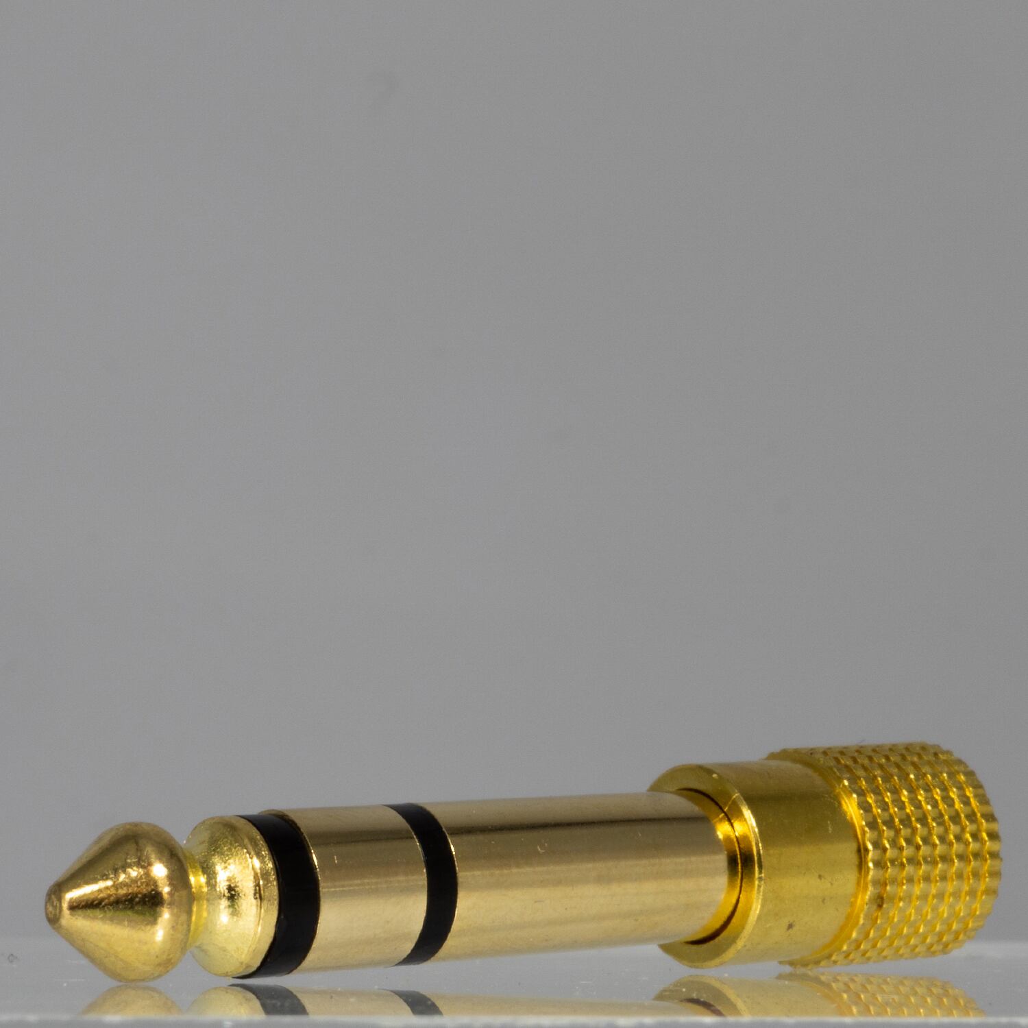 3.5mmステレオピンジャックを6.3mm3極ステレオジャックに変換するコネクタです。