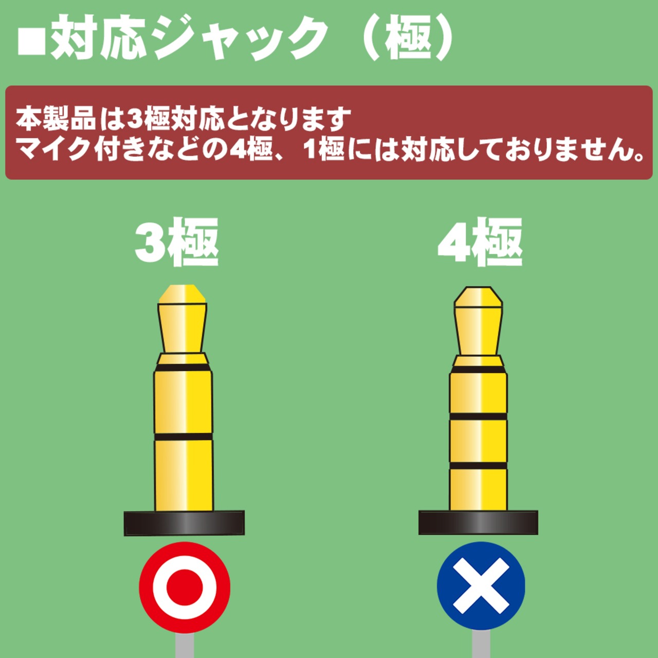 マイク機能付きイヤフォン等の4極プラグ製品には対応致しません。